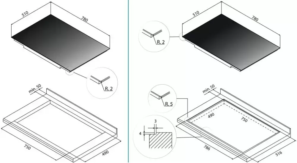 PIANO INDUZIONE 78x51 (индукция, 4 зоны, управление вытяжкой) особенности: