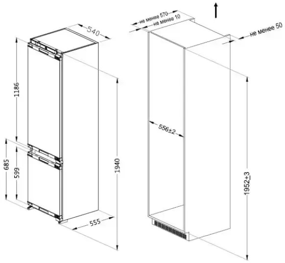 Встраиваемые холодильники с морозильной камерой